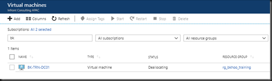 The above shows the VM (BK-TRN-DC01) in the resource group name rg_bkhoo_training